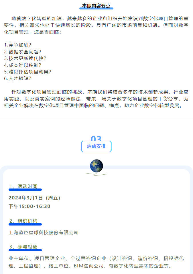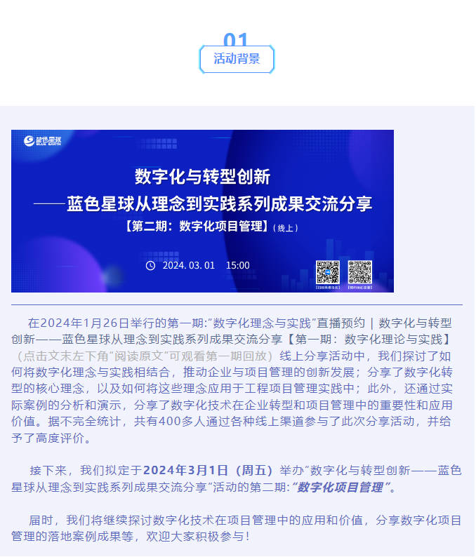 2024年3月1日(周五)太阳集团tyc151cc在线上举办“数字化与转型创新——太阳集团tyc151cc从理念到实践系列成果交流分享”活动的第二期:“数字化项目管理”。